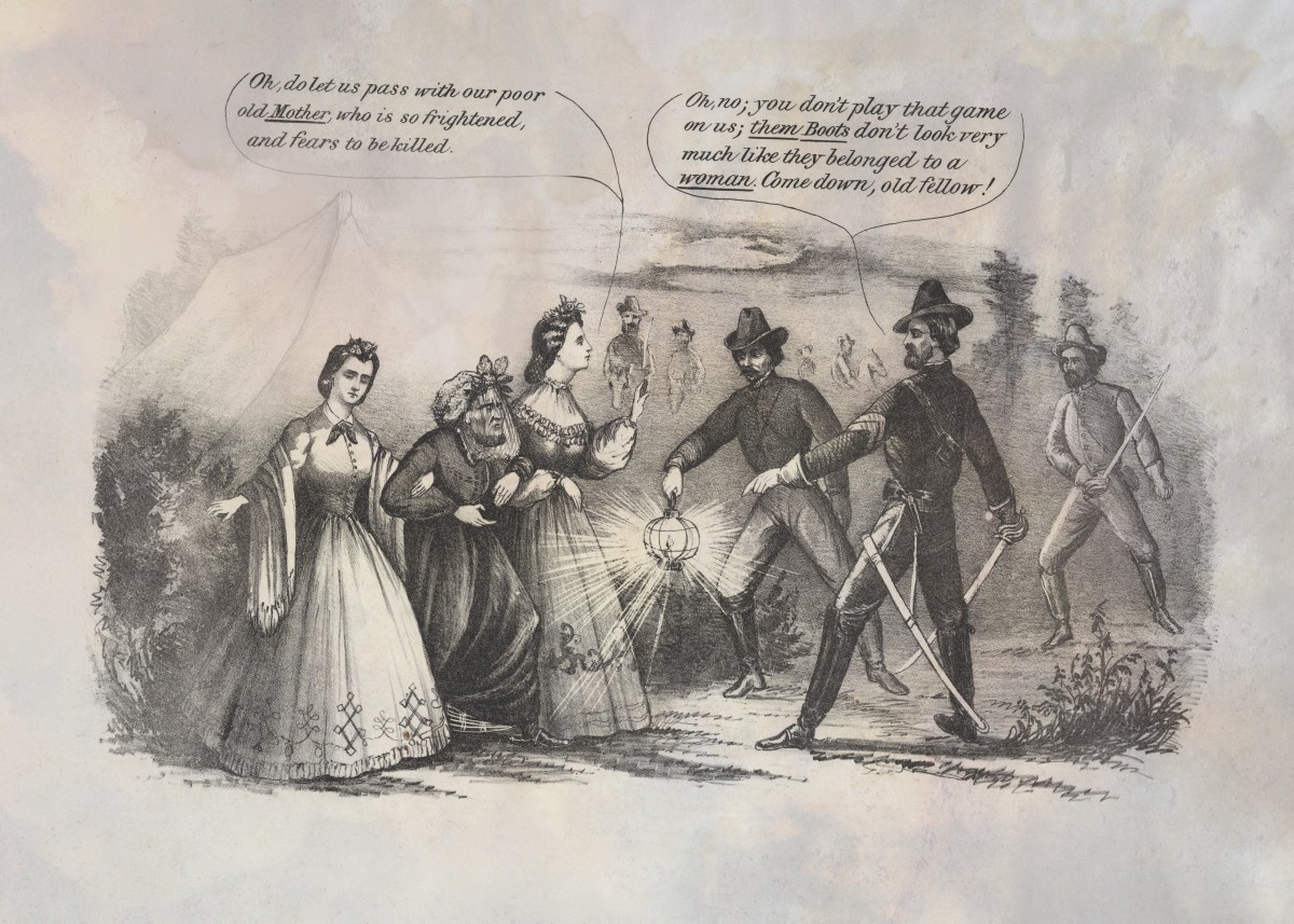 A follow-up report by Wilson made no mention of Davis being in women’s clothing, or even in disguise. Even Harnden, who was on the scene, admitted: “As to the story which became widely prevalent at the time, that Davis had on a hoop-skirt, and was disguised as a woman, I know but very little of it; but think it grew out of the remark of the soldier, that, when he stopped him, he had his wife’s shawl on him.”