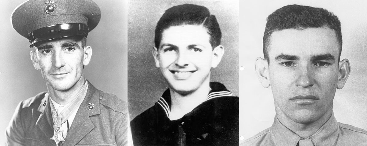 Elsewhere along the perimeter Hospital Corpsman Third Class Edward Benfold was moving among the Marines of his platoon treating wounds and giving much needed words of encouragement. As Benfold’s platoon was attacked from two sides, he left his covered position to render aid to wounded Marines. As Benfold moved forward, his citation reads, “to an exposed ridge line [he] observed two marines in a large crater. As he approached the two men to determine their condition, an enemy soldier threw two grenades into the crater while two other enemy charged the position. Picking up a grenade in each hand, Benfold leaped out of the crater and hurled himself against the on-rushing hostile soldiers, pushing the grenades against their chests and killing both the attackers.” Mortally wounded himself in his valiant attack Benfold was posthumously awarded the Medal of Honor for his actions.