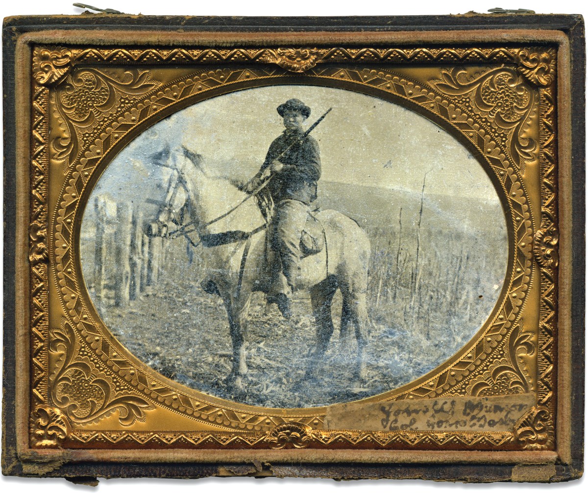 In this photo, Munson holds his Spencer and sits astride a horse he named “John Mosby.” The battered horse tack and the battered horse itself exemplify the rough condition of many of Wilder’s mounts, which were mostly scavenged from Tennessee farms.