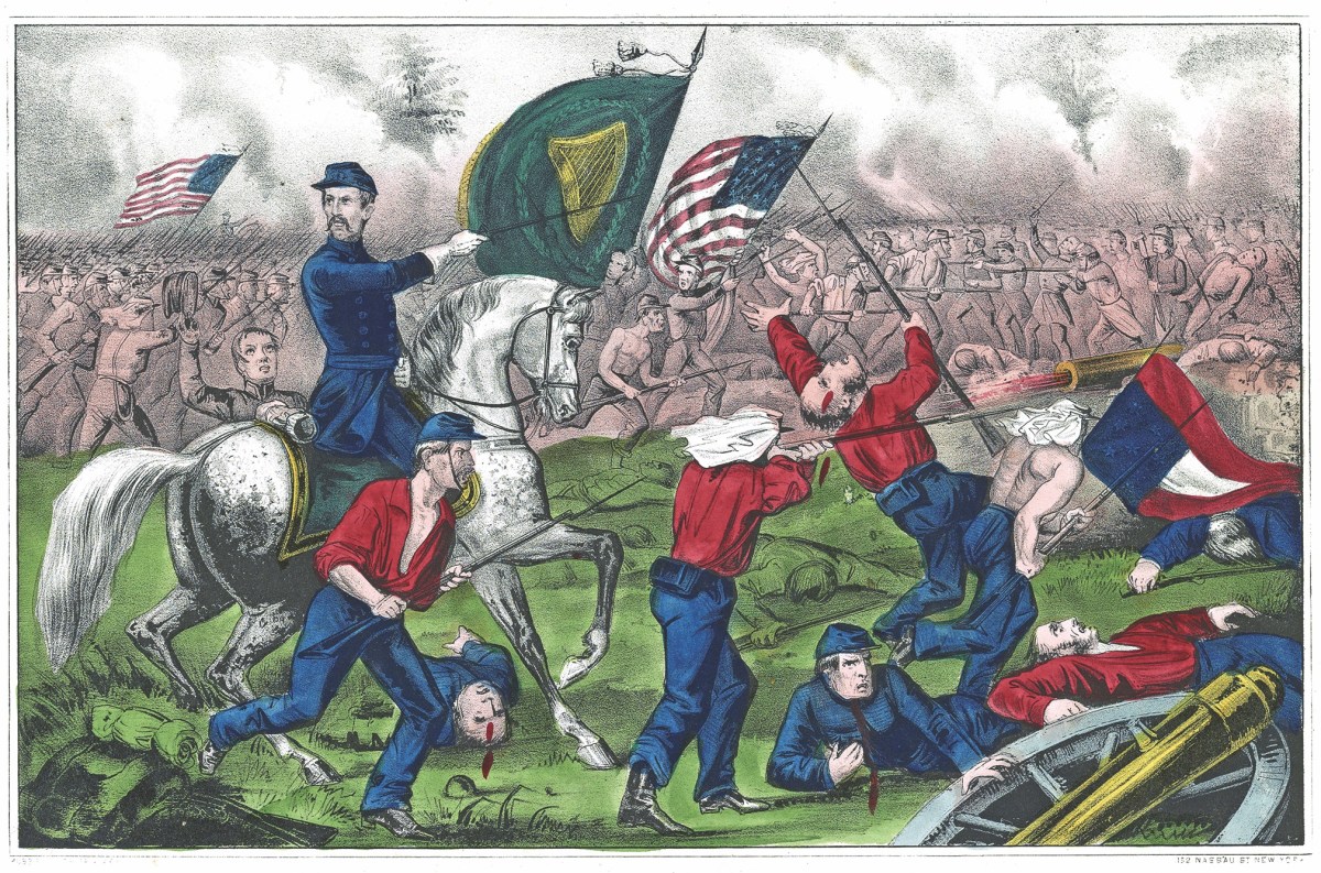 Corcoran, a colonel at the time, first made headlines in 1859 when he refused to parade the 69th New York State Militia to greet Prince of Wales Albert Edward upon the prince’s arrival in New York. He was court-martialed, though the charges were later dismissed. In July 1861, he was captured while leading his regiment at the First Battle of Bull Run. After time in a Confederate prison, he was released in August 1862. The popular officer was promoted to brigadier general and recruited a brigade known as “Corcoran’s Legion” composed of Irishmen.