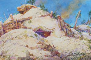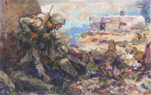 He was just another kid in the corps when he hit the sulfurous beach with the first wave at Iwo Jima, Japan, on Feb. 19, 1945, only to fall with a wound that inflicted permanent nerve damage to his left hand. Regardless, after World War II he studied art at the Newark School of Fine and Industrial Arts in New Jersey. On graduation in 1950 he embarked on a successful career that drew him back to illustrating moments in Marine history.