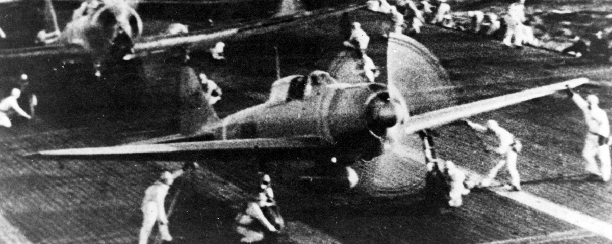 (Img: U.S. Navy/National Archives) On December 7, 1941 the Japanese bombed the military base Pearl Harbor, Hawaii. Prior to the attack, President Franklin Delano Roosevelt had expressed the desire for the U.S. to remain neutral but the attack caused Congress to declare war the following day. President Roosevelt termed this day, “a date which will live in infamy.”
