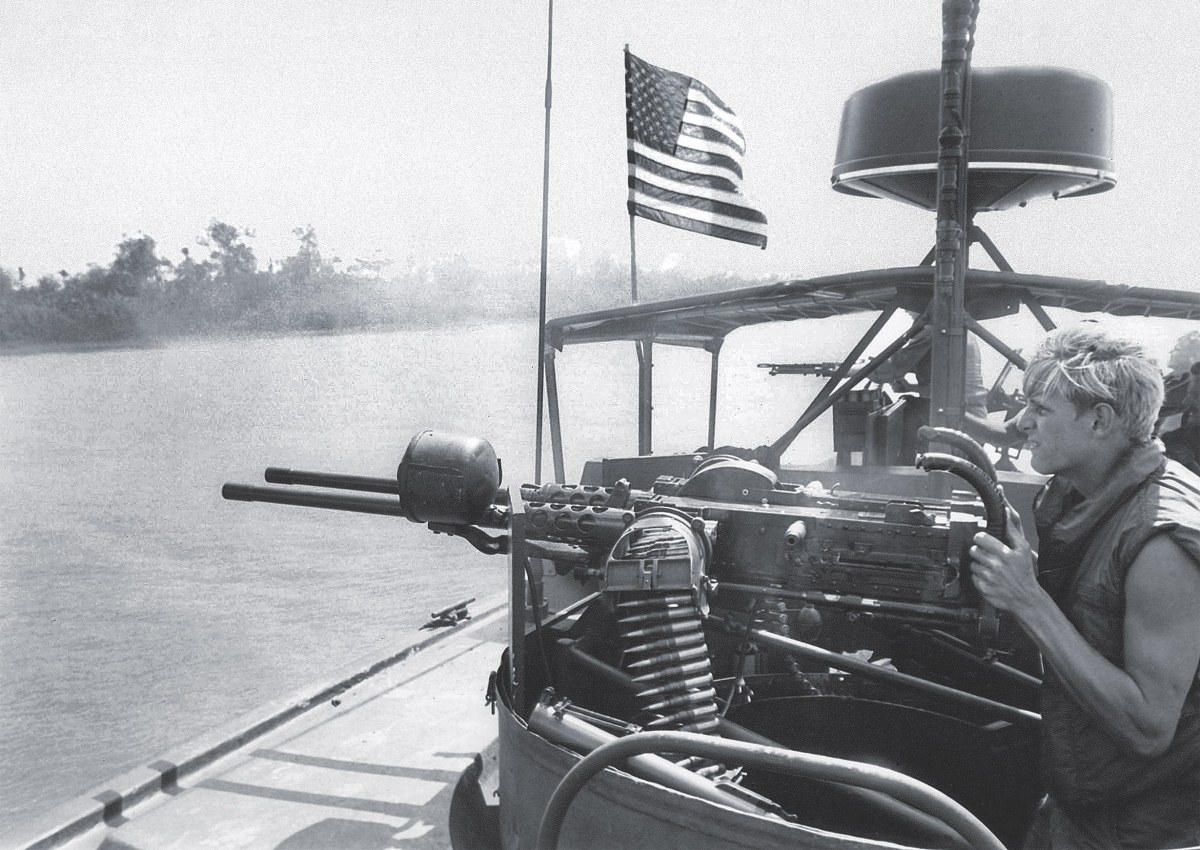 The first 11 boats arrived at the Navy’s Nha Be base in Saigon on March 21, 1966. New crews learned to operate the boats in the Vung Tau area, a port location at the tip of South Vietnam. Boat crews were noted for the modifications they made to increase performance. They added armaments and protective shielding. They also tweaked the engines to get more power. Additionally, “crews would modify their gun tubs to hold more rounds,” recalled Petty Officer 3rd Class machinist mate Ralph Christopher, author of Duty Honor Sacrifice. For example, one of his friends, Warrant Officer Ralph Fries, changed the amount for the forward twin .50-caliber machine guns from 250 to 500 rounds per tray. Additionally, “they belted 1,500 rounds per .50 gun and flanked them on each side of the bow and over the pump covers,” Christopher said.