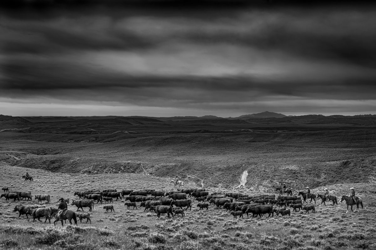 In Wyoming, by the way, the term “cowboy” is gender neutral, as applicable to the women and girls as the men and boys who ride, rope and work cattle. That said, on the Wagonhound most ranch wives work as teachers or nurses in town. They may throw in a hand at brandings, but the daily operations are mostly men’s work. The two years Anouk spent at the Wagonhound allowed her to follow these busy men and women as they gathered and branded and otherwise did their daily chores. “I was able learn how they run a ranch, how hard they work, how much it takes to do all this,” she says. “And their deep affection and love for the land, for the animals, the cows, the calves, their dogs and their horses. It all works together in such a harmony.”
