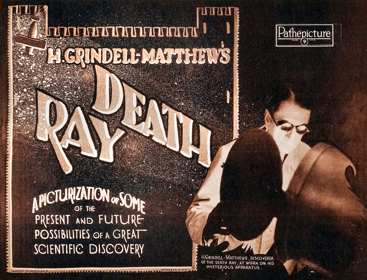 Harry Grindell Matthews, a British engineer and Boer War veteran, claimed as early as 1923 to have invented a Death Ray, and was invited by the British War Office to demonstrate it. According to the government, it was an absolute farce, and Matthews offered no attempt at explaining how his device worked. He did, however, make a short film of a mock demonstration, and then threatened to sell the death ray to France. That caught the British public’s attention.