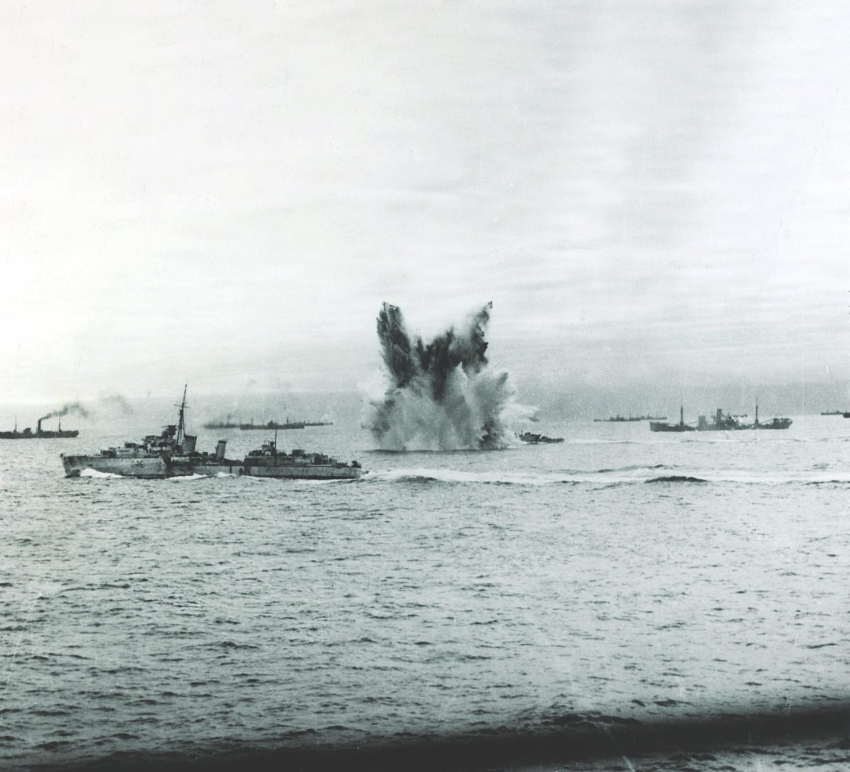 A: This is a trickier question than it may at first appear. I checked with several naval history experts, and the consensus is that convoy escort vessels raised a black flag when they had contact with or were engaged in tracking and/or attacking a U-boat. A few of my colleagues recall that there was still a black flag in the shipboard flag locker as late as the Vietnam War, though it was never used by then.