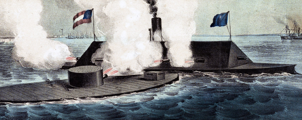 While history records the encounter between the USS Monitor and the CSS Virginia at Hampton Roads as a tactical draw, could either of the two ironclad ships have sunk the other? Anticipating action against wooden Union ships, the Virginia carried only explosive shells, which lacked the penetrating power against the Monitor’s 8” inch turret armor. The Virginia struck the Monitor 22 times, including 9 against her turret. Shots fired from her four rifled Brooke guns made in some instances 4” indentations in the Monitor but failed to penetrate. The Monitor fired 43 times, striking the Virginia 20 times, but none at or below the Confederate’s vulnerable wooden waterline. More telling perhaps was the fact that the Monitor was restricted by the Navy Department to using 15 pound explosive charges with her twin 11” Dahlgren guns, rather than the 30 pound double-charges later authorized. Lt. Greene of the Monitor later commented that had 30 pound charges been used, it was probable that the shots would have penetrated the Virginia’s casemate.