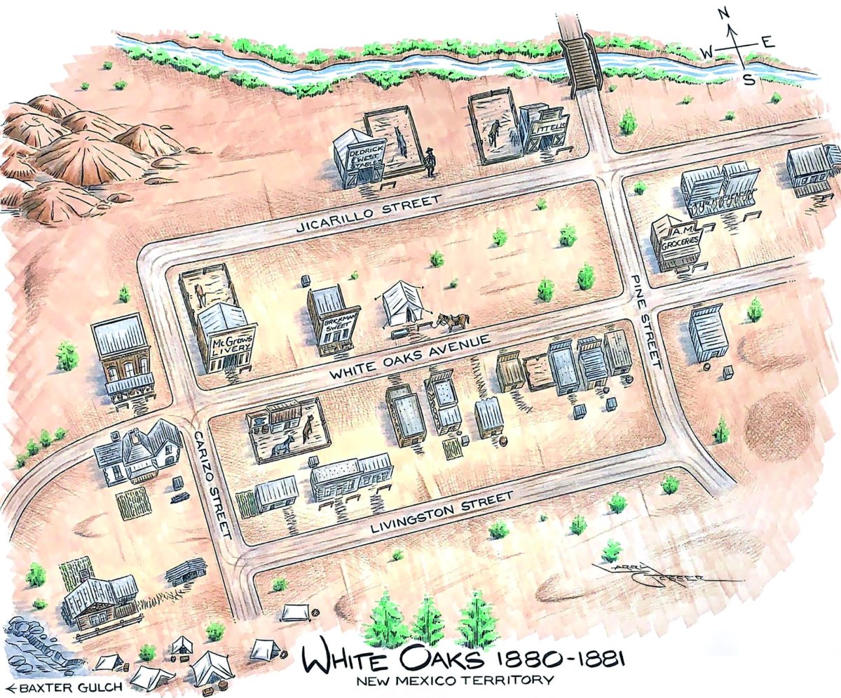 As the founders of White Oaks took the time to have their town properly surveyed and plotted, much of its structure and design was recorded through extant tax and property records. Still, a clear picture of its early years has been lacking. For one, while the mining camp may have experienced a formal upbringing, it had a rough and violent start. Between 1879 and ’84 it was not a place for the faint of heart.
