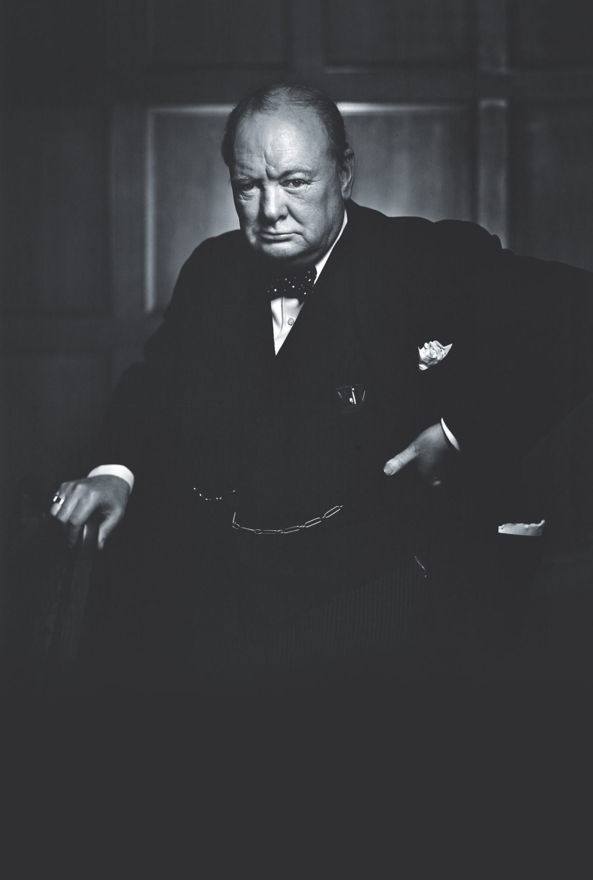 “I went back to my camera and made sure that everything was all right technically,” Karsh recounted. “I waited; he continued to chomp vigorously at his cigar. I waited. Then I stepped toward him and, without premeditation, but ever so respectfully, I said, ‘Forgive me, sir,’ and plucked the cigar out of his mouth. By the time I got back to my camera, he looked so belligerent he could have devoured me. It was at that instant that I took the photograph.”