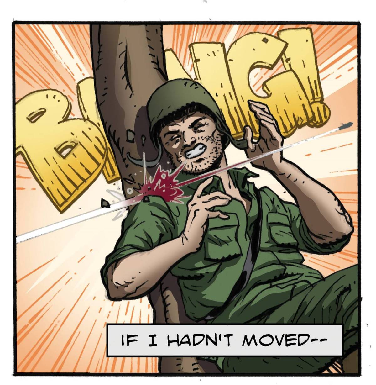 “As I was laying in a prone position, someone or something whispered, ‘move back,’” he said. “I immediately moved back. Just as I moved a bullet hit the sand where I had moved from.”