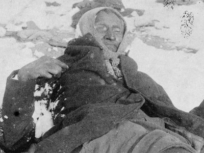 An hour later the guns stopped. The place was silent. Trails of blood trickled along the ground heading out of camp toward the gulches. Hundreds of Indians lay dead or dying on the frosted earth alongside a score of soldiers, hit mostly by the fire of their own Hotchkisses. Clouds filled the sky, and soon a heavy snow began to fall. Three days later, New Year’s Day 1891, after the blizzard had passed, a burial party was sent to pull the frozen Indians from beneath the blanket of snow and dump them in a long ditch, piled one upon another like so much cordwood, until the pit was full. Many of the corpses were naked because soldiers had stripped the ghost shirts from the dead to take home as souvenirs.
