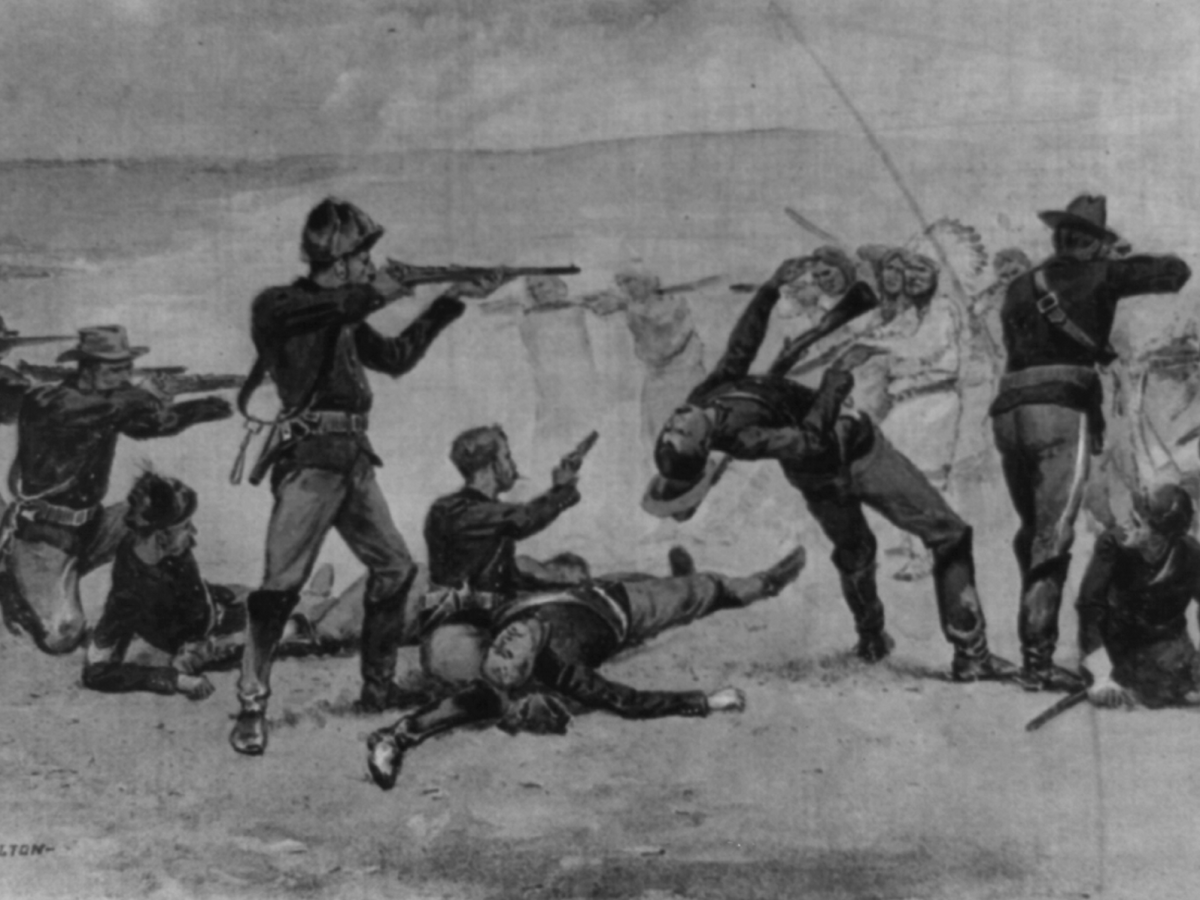 Forsyth ordered [a trooper] to take the gun from the Indian, which he did. [Major Samuel] Whitside then said to me, “Tell the Indians it is necessary that they be searched one at a time.” The young warriors paid no attention to what I told them. I heard someone on my left exclaim, “Look out! Look out!” I saw five or six young warriors cast off their blankets and pull guns out from under them and brandish them in the air. One of the warriors shot into the soldiers, who were ordered to fire into the Indians.