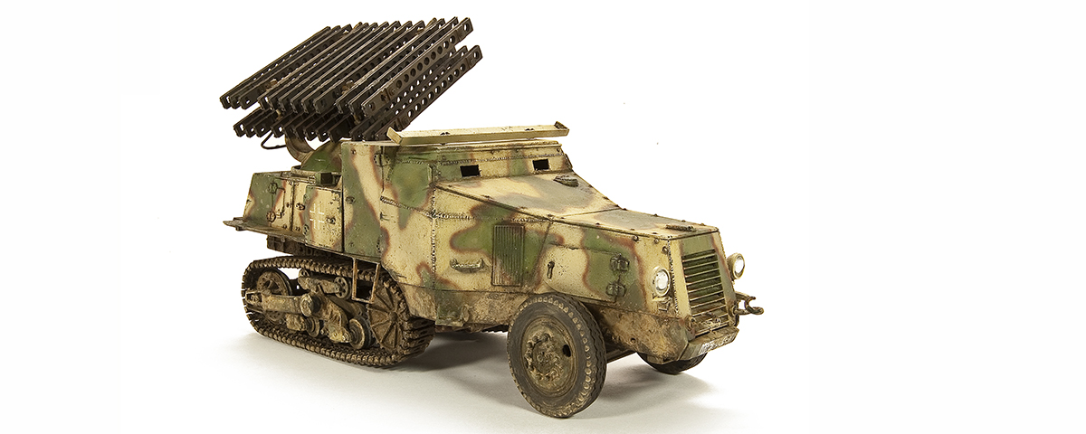At Heinrich Himmler’s direction, a program was developed to create weapons to be used exclusively by the SS, including the 8cm Raketensprenggranate, a rocket delivery system based on the Russian Katyusha rockets. While none of the rocket systems made it to the SS, they were put into service with the 21st Panzer Division while it was stationed in France in 1943. Photographic evidence indicates that the 21st Panzer converted as many as 16 of their Somua MCL halftracks into these mobile launchers; the French company DES Kit released their resin model of one last year. The box contains a 13-page instruction packet and a number of zip bags containing the grey cast parts. The instructions are typical of resin kits, including a number of black and white photographs and line drawings showing placement, along with a descriptive sequence along the margins.The casting of the parts is excel lent, with very few air holes, limited flash, and no warps. Resin kits, in general, tend to require a bit more of your attention than their styrene counterparts, so it is a good idea to study the instructions thoroughly and do a number of dry fits before reaching for the glue bottle.